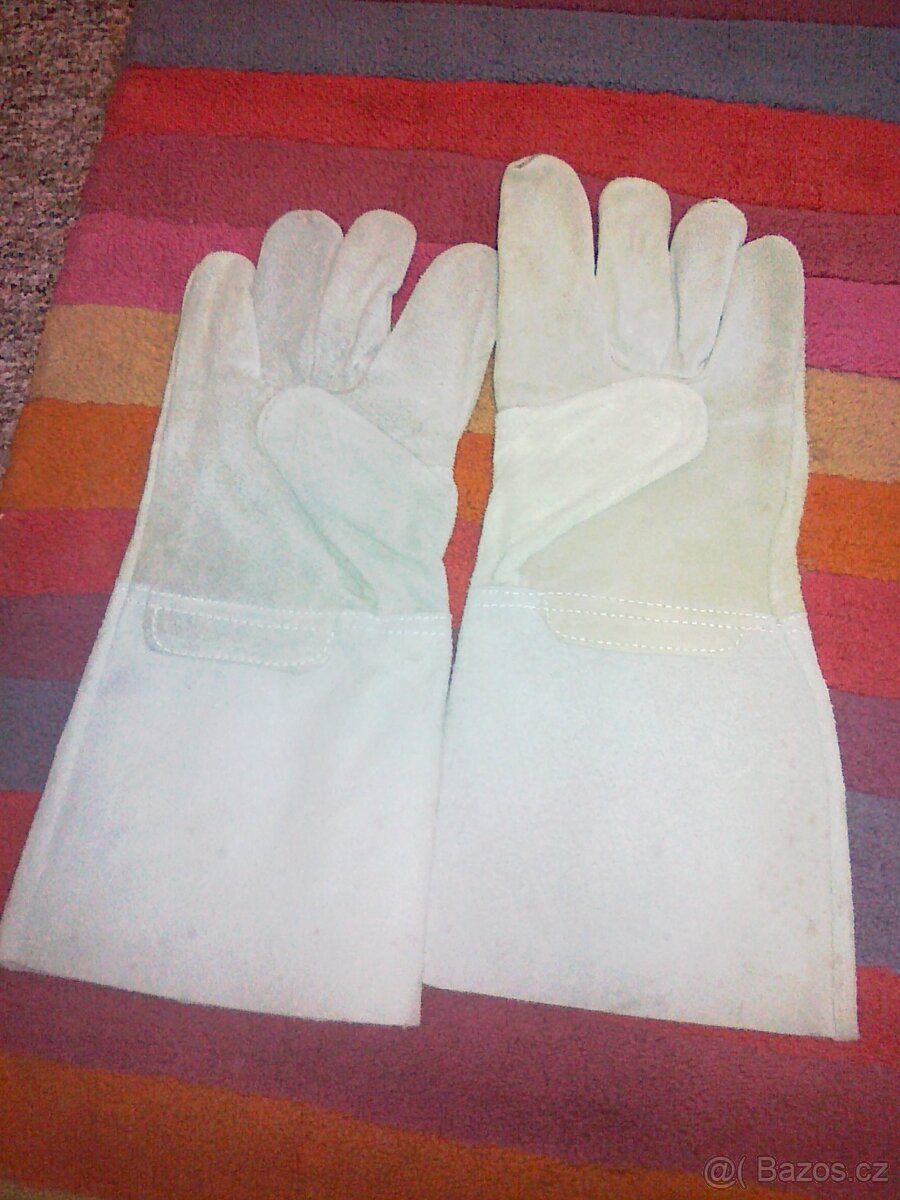 Prodám tyto nové kožené rukavice na svařování s prodlouženou manžetou.