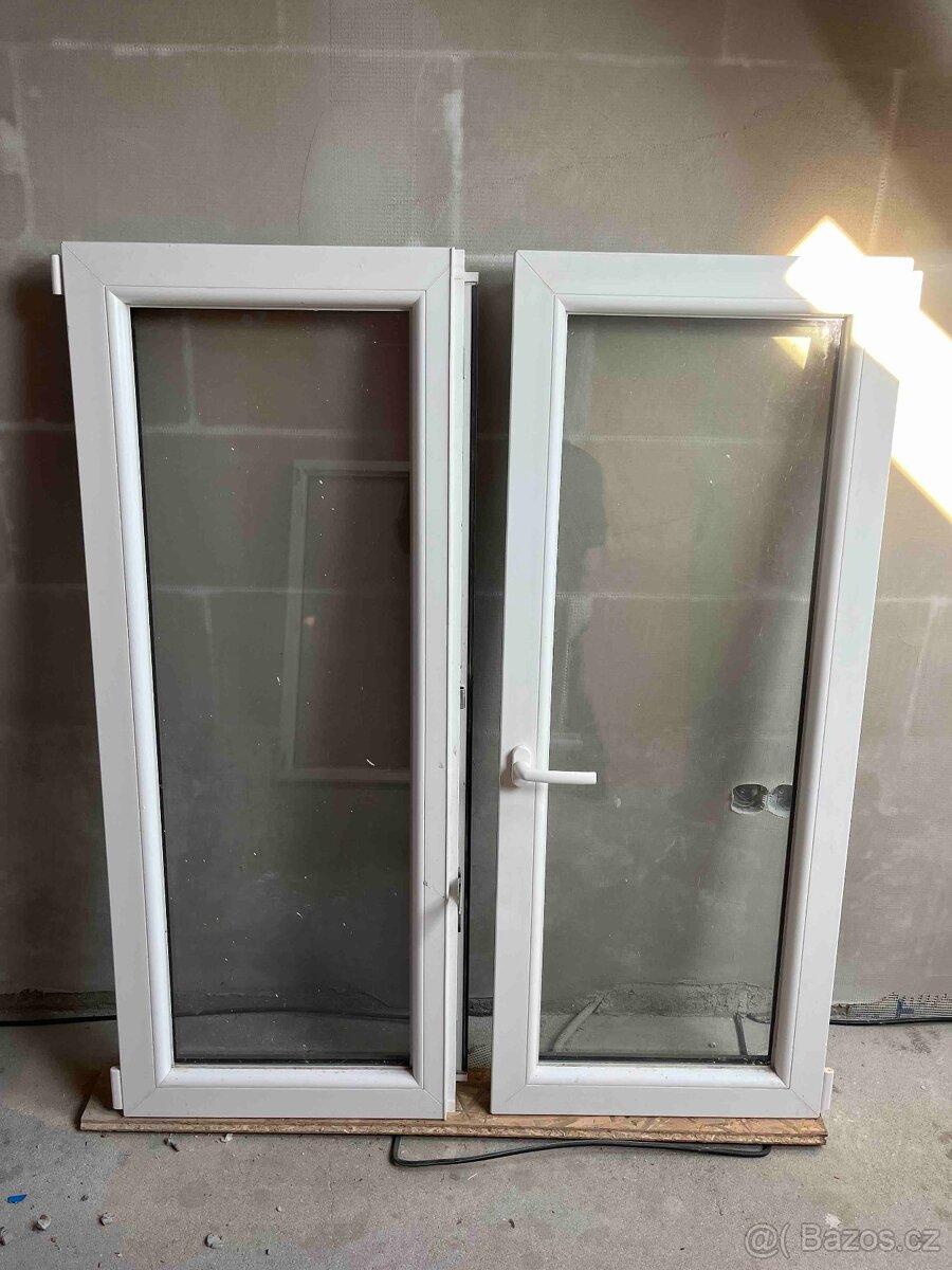 Dvoukřídlé okno bez středního sloupku, pravé křídlo otvíravě sklopné. Levé křídlo otvíravé po otevření pravého.