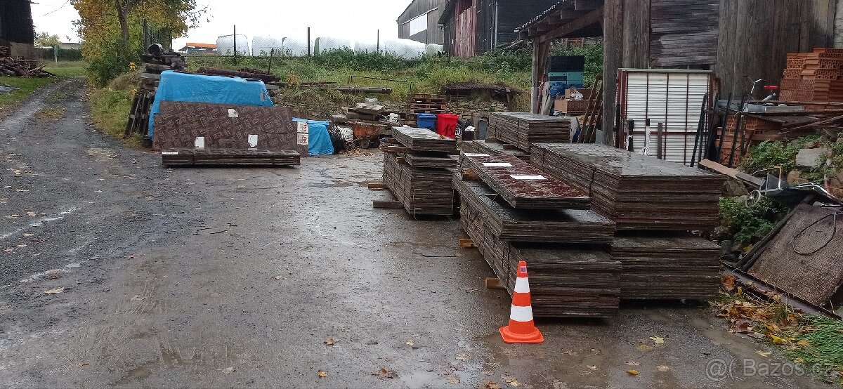 Prodám voděodolné e překližky použité,rozměry od 0.58-1.2/délka 2.6-3.6 cena za m2