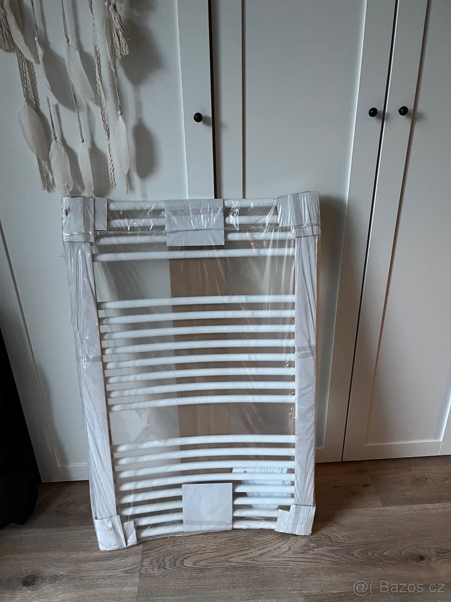 Prodám nepoužitý žebříkový koupelnový radiátor KDO 600/960. Cena kolem