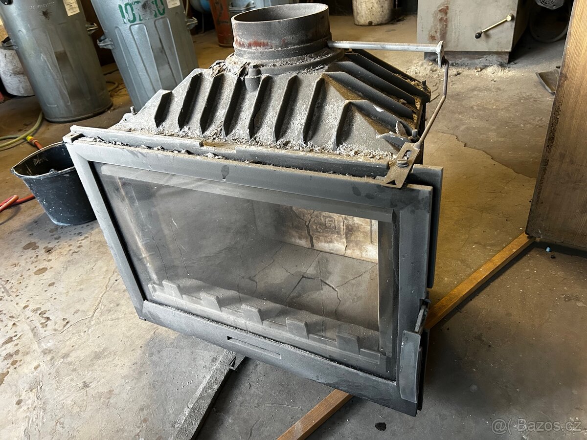 Použitou krbovou vložku. Rok výroby asi 2009. Topili jsem v tom dvě tři sezony, pak už ne.