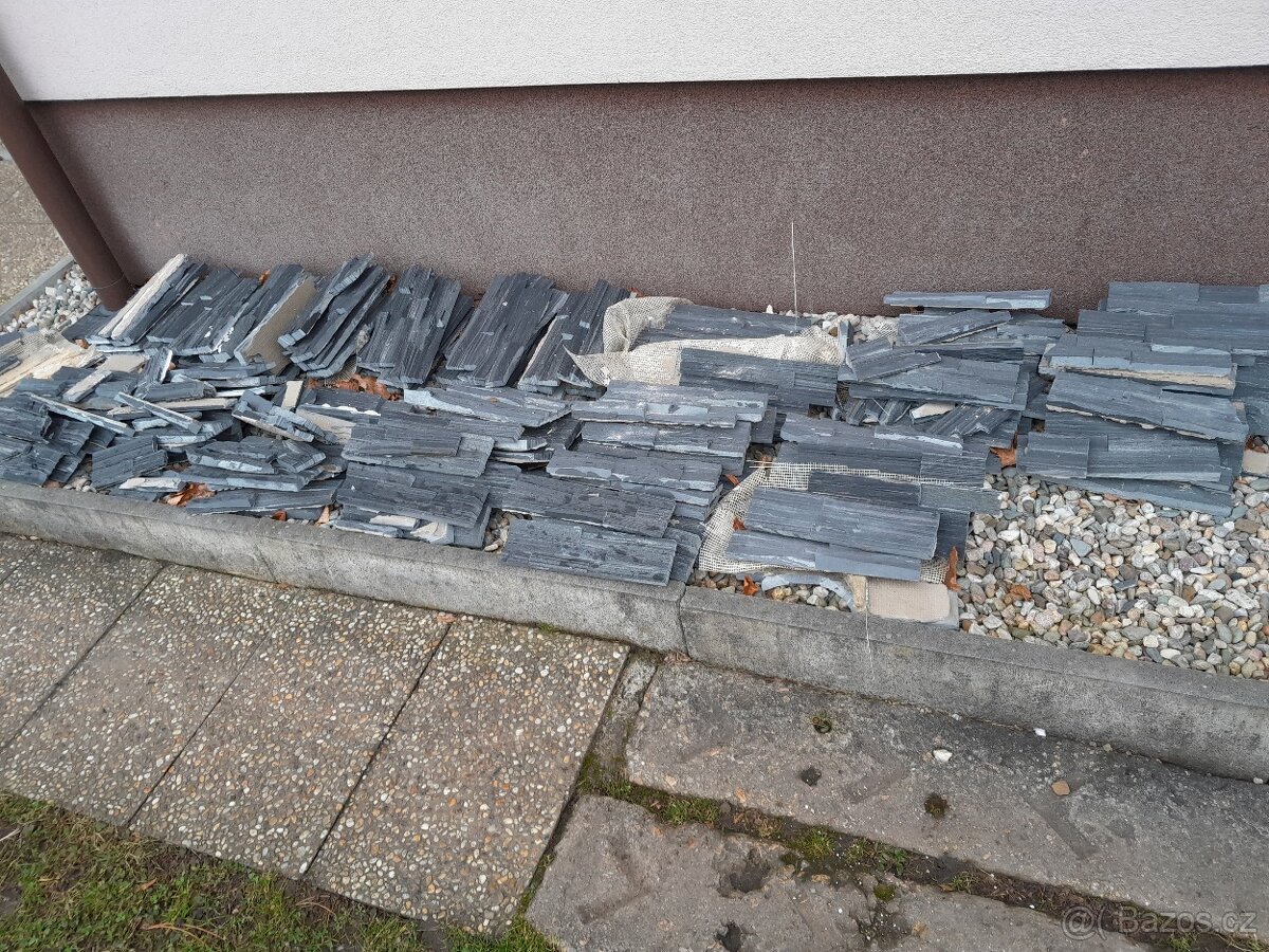 Daruji použitý obklad - lámaná přírodní břidlice. Sundané ze zdi obývacího pokoje. Dohromady cca 5m2.