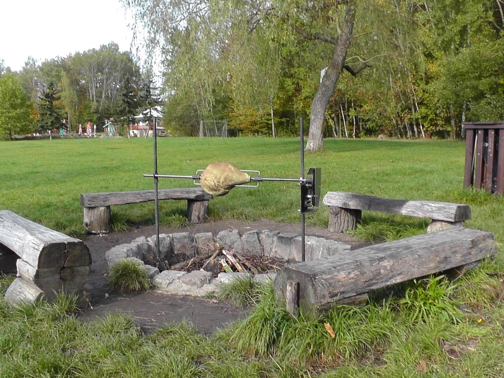 Grilovací sada je určena ke grilování selat, kýt, krůt nebo kuřat.nad přírodním ohništěm a je dělaná tak že rožeň lze vytočit mimo oheň a bezpečně okrajovat