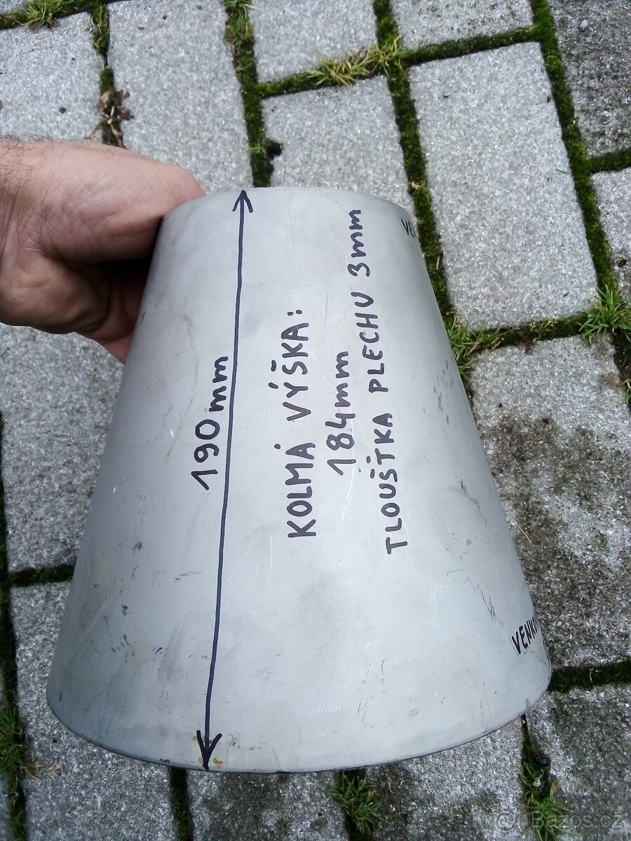 Venkovní průměry: užší strana 99mm, širší strana 204,5mm.