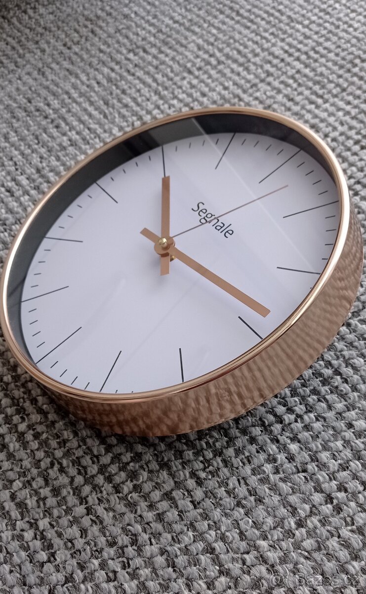 Nové, nepoužité nástěnné hodiny, rose gold barva, průměr 25 cm. Zaslání Zásilkovnou