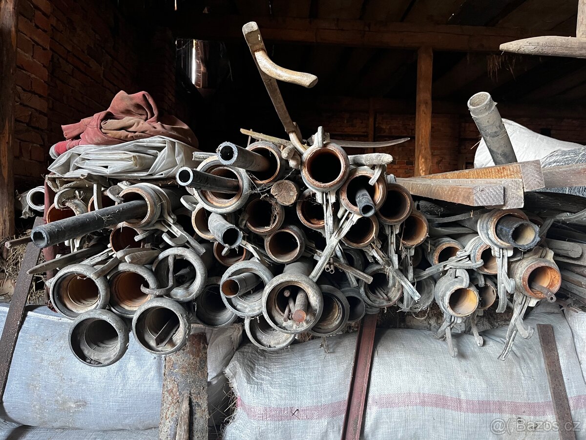 Prodám trubky hliníkové průměr 75 mm, délka 6m, 16 ks z toho jsou asi tři ohnuté a jedna je železná. Cena za kus. Mám i nějaká kolena, T - kusy.