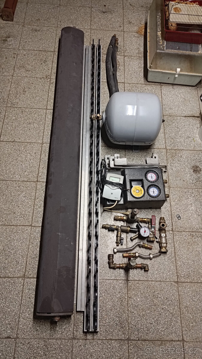 Prodám solární kolektor s vakuovými trubicemi. Kompletní souprava pro ohřev vody obsahuje 30 ks vakuových trubic s držákem, oběhové čerpadlo, vyrovnávací tlakovou nádobu, pojisné a odvzdušňovací ventily, ovládací panel VITOSOLIC 100, část trubek rozvodů.