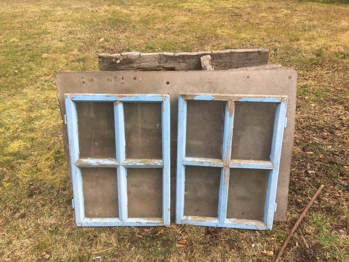 Použitá okna - [5.3. 2026]Za symbolickou cenu nechám dvě zdvojená dřevená okna, sklo je zasazené v gumě slušný stav, rozměr oken byl 150x150cm.viz.foto.Cena za kus 200.kč.