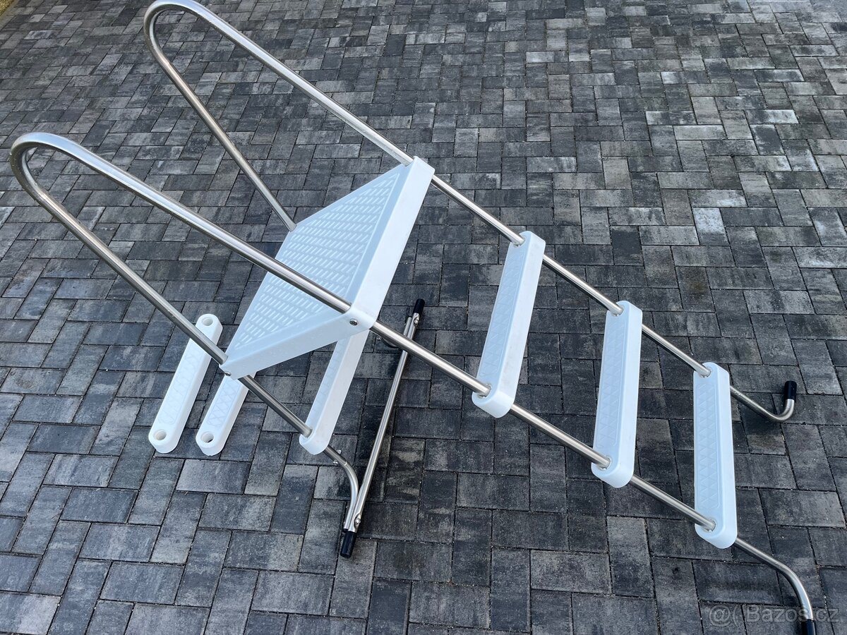 Prodám nerezové schůdky v pěkném stavu, do částečně zapuštěného bazénu. Rozměry viz foto.