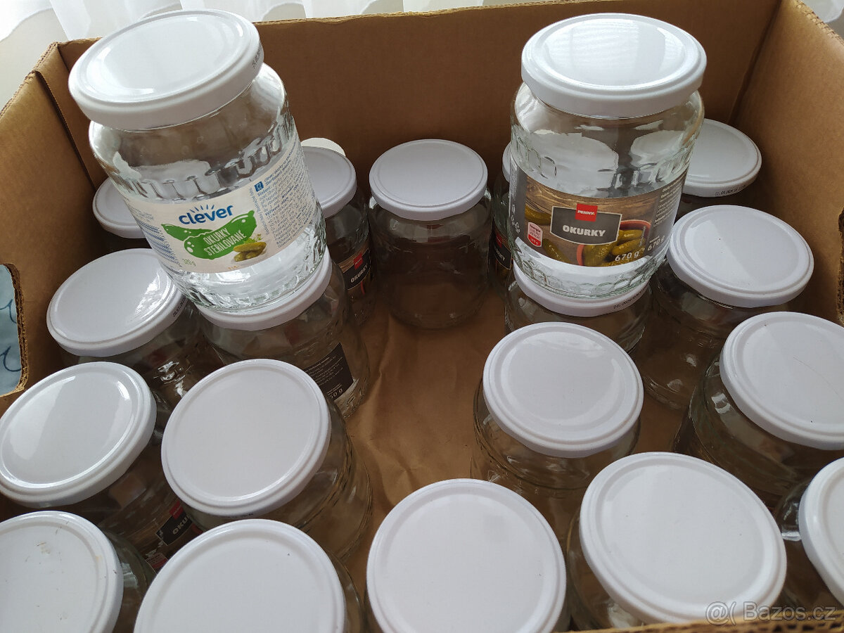 Prodám větší počet zavařovacích sklenic se šroubovacími víčky převážně od okurek za 5 Kč/ks. Při odběru nad 20 ks sleva 4 Kč/kus.
