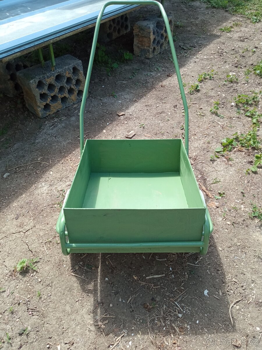 Prodám ruční vozíček,nová gumová plná kola,bedna d 53,š 46,v 20cm,osobní odběr