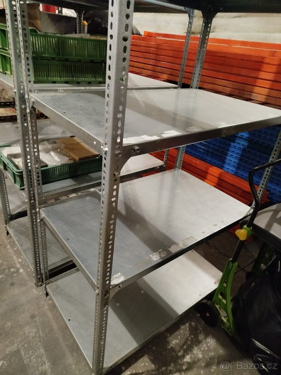 Policové regály, vhodné do garáže, sklepa či do skladu na prodej.