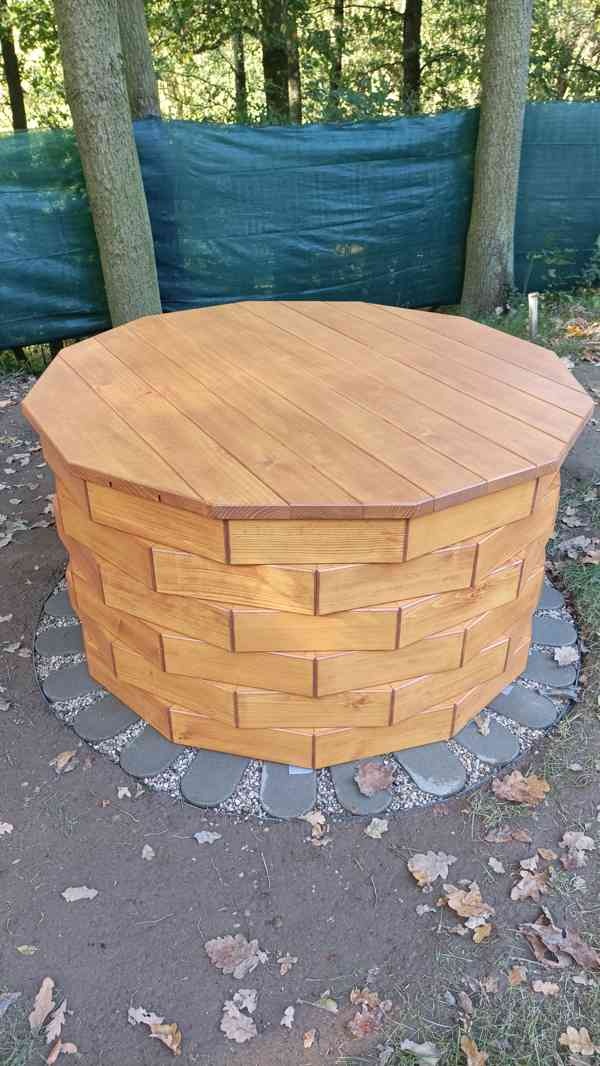 na průměr 100 výška 40 cm cena 5800Kč a 120 výška 50 cm 7000 Kč.Možnost jiných průměrů a výšek krytu dle přání zákazníka.Děláme kryty průměrů 80,,100,120,130,140 a pod.Vyrobeno ze smrkového masivu spodní část z fošen 50/100mm.dekl z prken 30mm.Možnost náťeru.Cena je uvedena bez nátěru.Nátěr provadíme lazurou sikkens cetol.Dostupnost ca 3-4 týdny.EMAIL:ziptomasrehak@email.cz