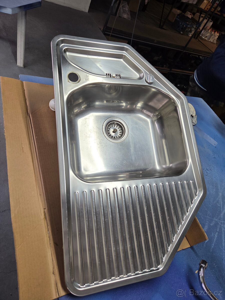 rohový nerez dřez s baterií
