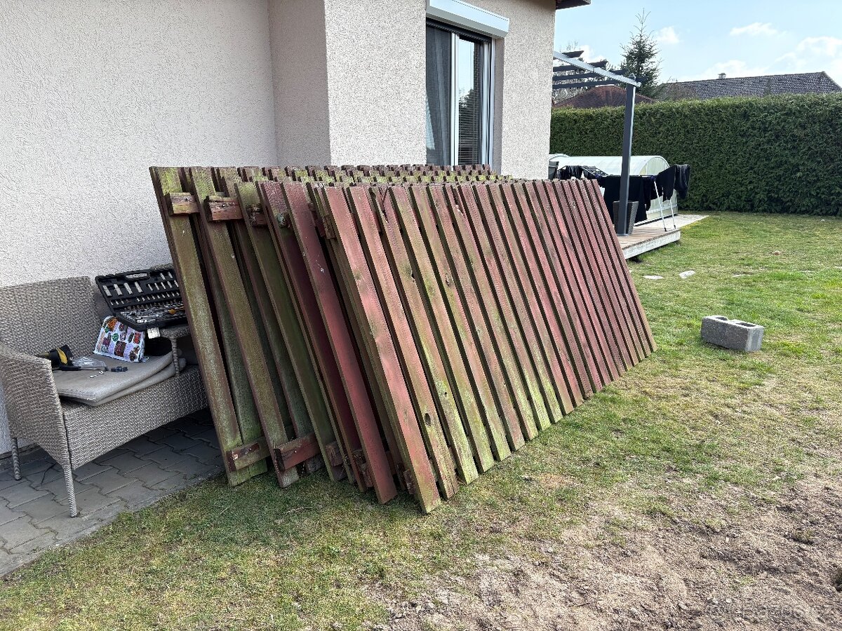 Daruji za odvoz dřevěný plot,10 dílců po cca 3 metrech. Některá prkna již uhnilá.
