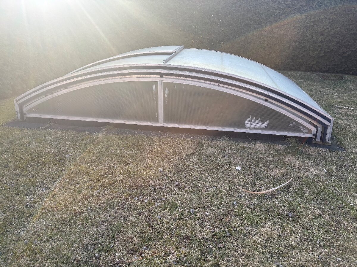 Prosᡠrolovací střechu na bazén 3x9m. Stáří 5 let, vše dunkční