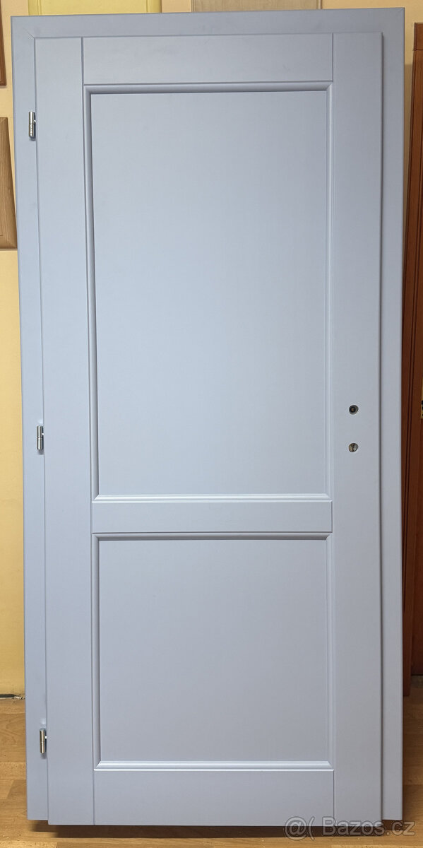 Nabízím nové dřevěné dveře 80 levé s obložkovou zárubní na 15cm silnou zeď.
