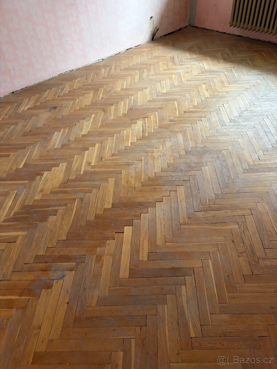 Parkety použité - [20.2. 2026]Parkety použité z dvou místností, jedny lakované 20x4cm/22mm za 0,60 Kč/ks = 66,60 Kč/m2, (125 ks/m2), a druhé nelakované 25x4cm/22mm za 0,70 Kč/ks = 61,60 Kč/m2, (100 ks/m2).