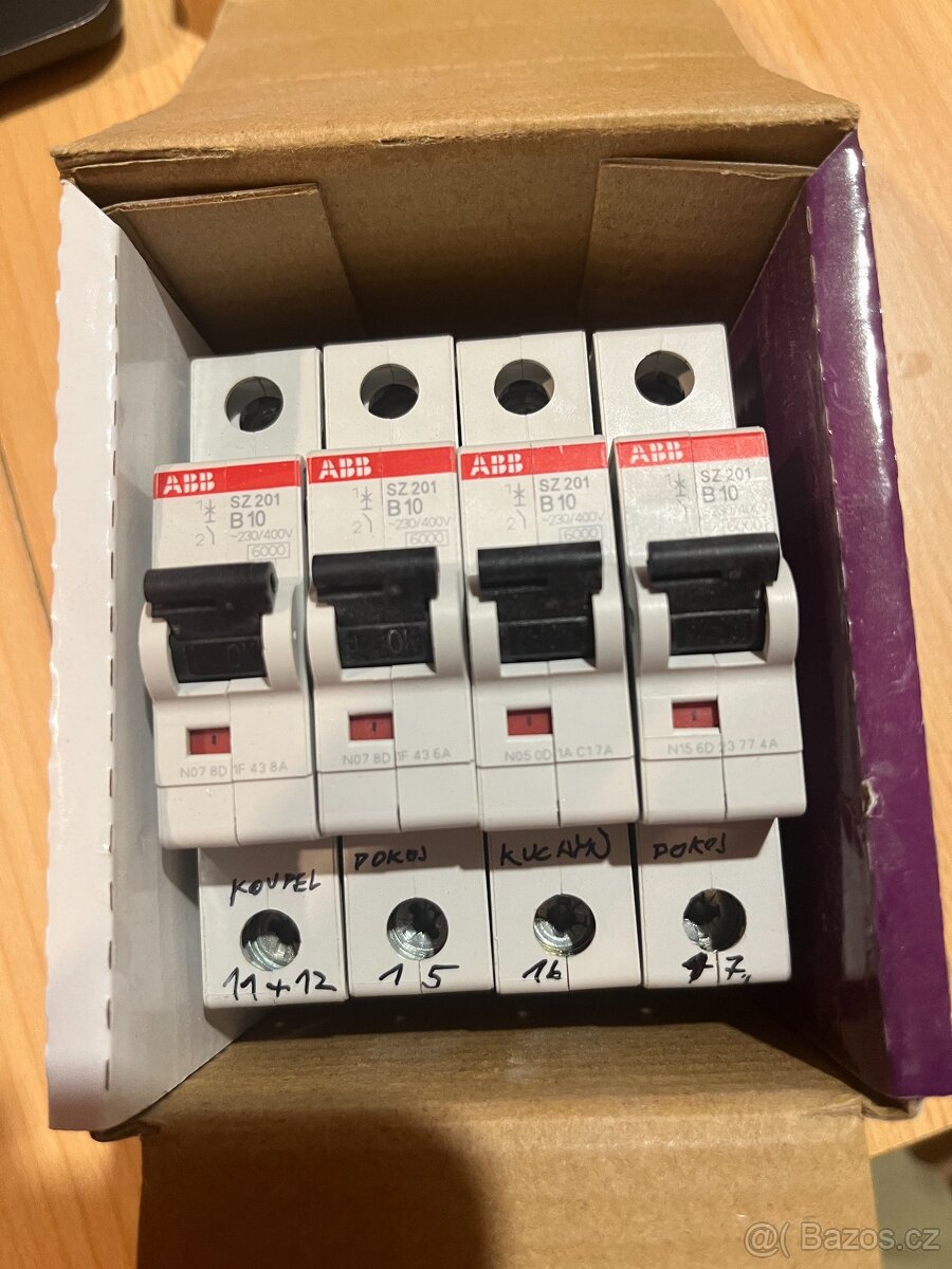 Prodám sadu 4 kusů použitých, ale plně funkčních jednofázových jističů ABB, model SZ201 B10. Jističe jsou nepoužité - použil jsem nakonec jističe s proudovým chráničem.