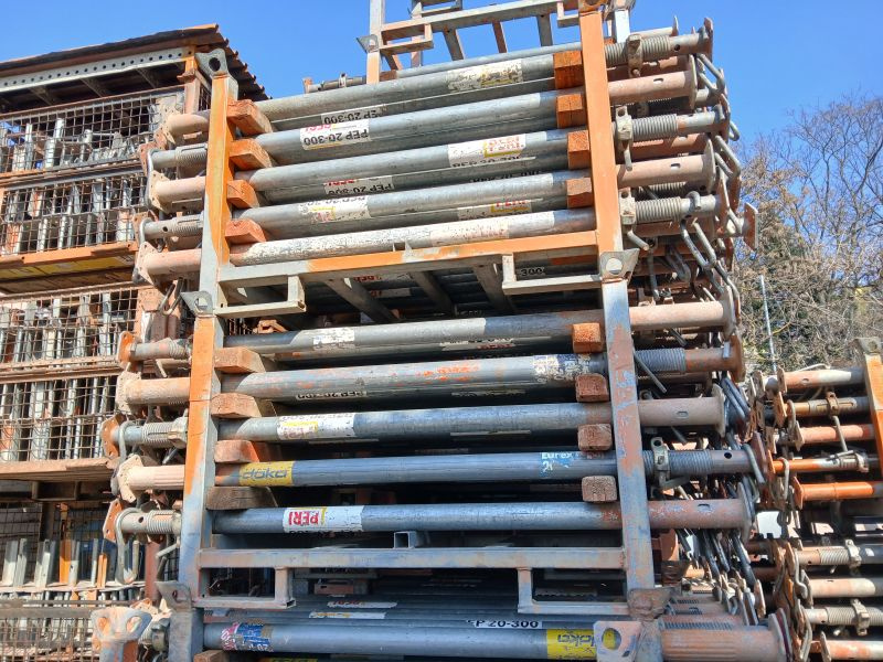 Prodám používané teleskopické 2 tunové stojky s maximálním výsuvem 300cm, plně zasunuté cca 180cm. V přepravce je mix od různých výrobců bednění: DOKA, PERI, Hunnebeck, NOE, SBG aj. Všechny stojky jsou pozinkované, plně funkční (nedrhnou) s dostatečnou tloušťkou stěn trubek (žádná laciná náhražka). Cena za kus. V případě požadavku na výběr pouze "značkových" DOKA nebo PERI výrobků příplatek 200Kč/ks. Sleva při odběru nad 50ks - 850Kč/ks (mix v přepravce) + přepravka 1500Kč/ks.