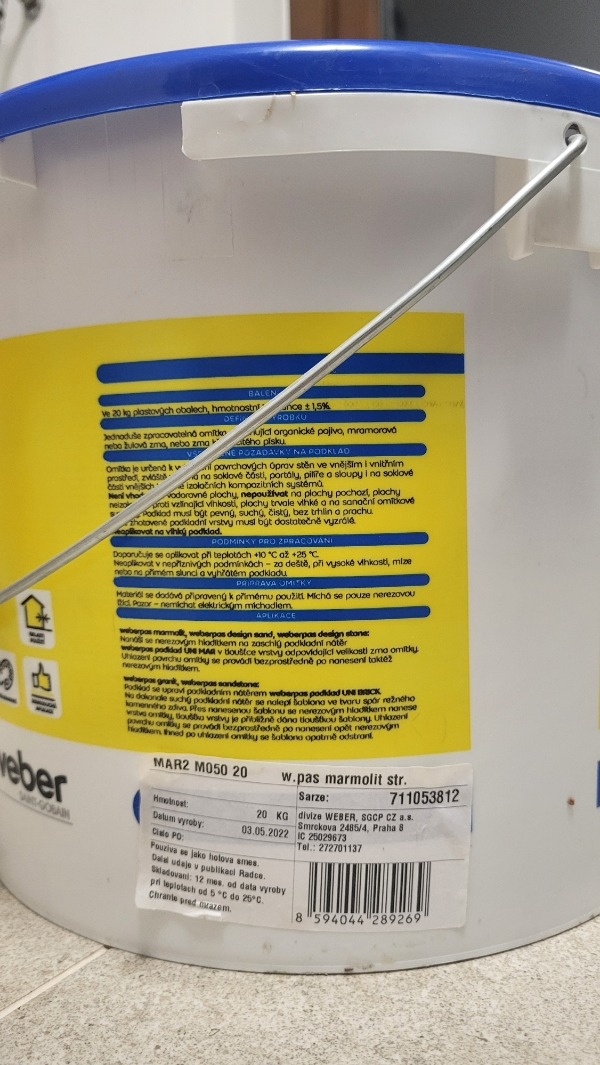 Cena je uvedena celkem za 1,5 kbelíku cca 30kg. V ceně je také weber wp podklad hnědý pod marmolit viz. foto