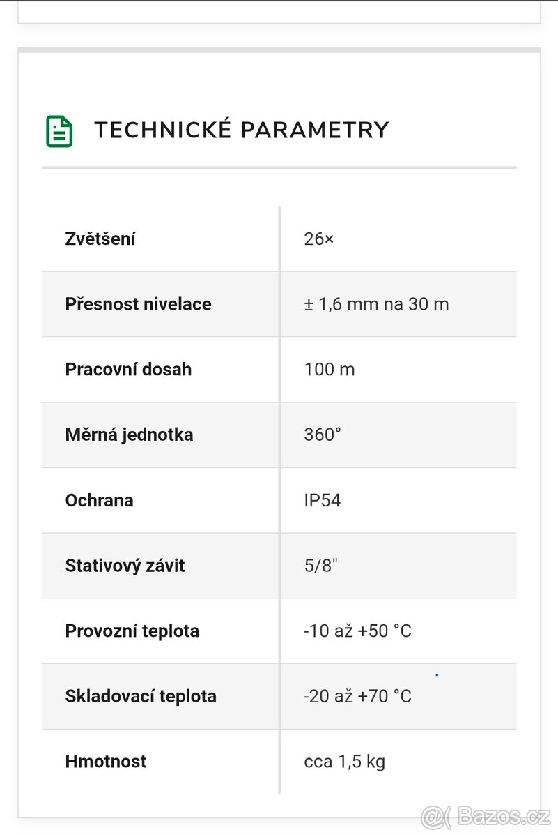 Prodám optický nivelační přístroj s 5m latí a stativem, málo použitý při stavbě rodinného domu.
