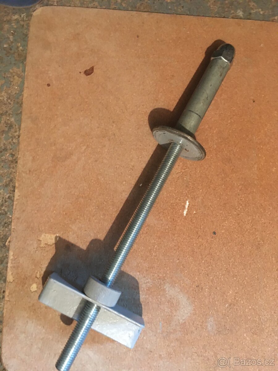 seřizovatelný doraz k horizontální štípačce dřeva pro zkrácení dráhy posuvu podle délky špalků a zrychlení štípání. Již nevyužitý.