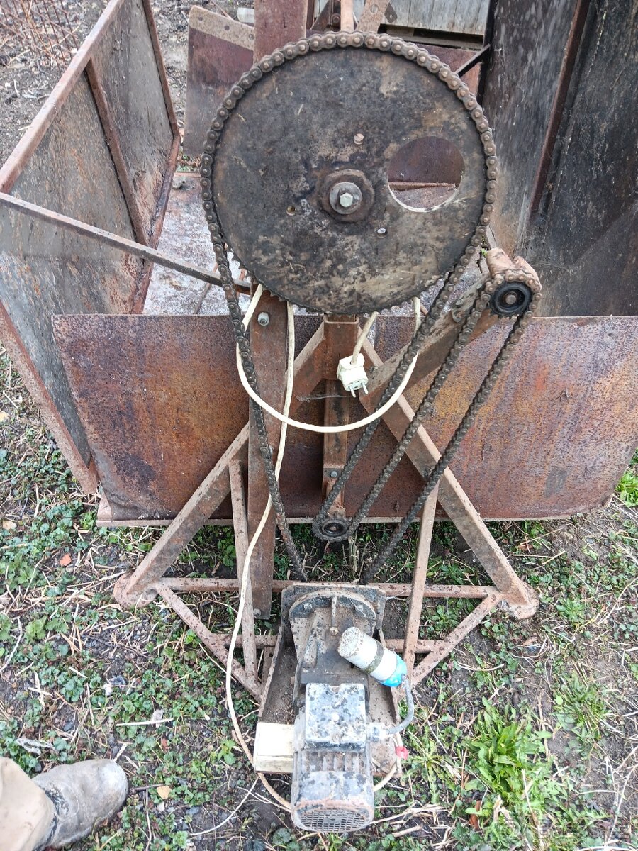 Prodám velky robustní gril na prase/sele, masivní ocelová konstrukce, kompletní plechová proti větru, střecha proti dešti, pohon elektromotor s řetězový převodem, výška osy je stavitelná, vyjímatelná, rozebiratelny pro převoz, motor funkční