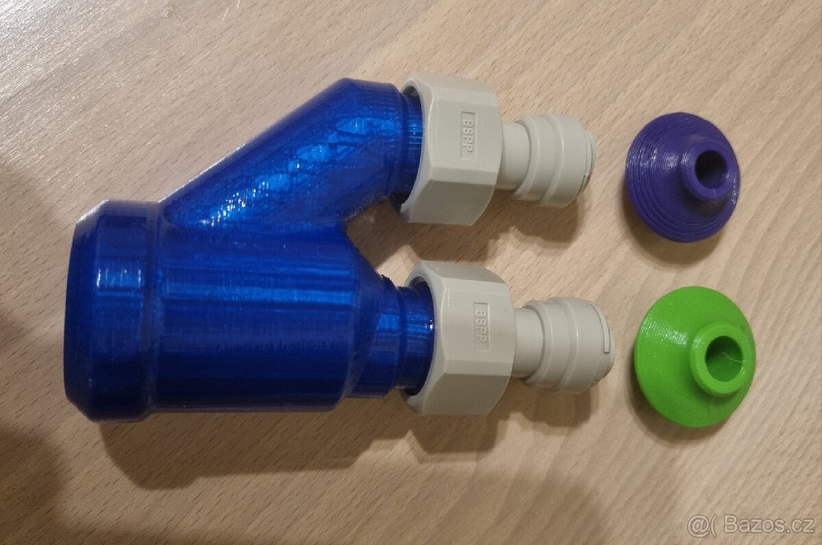 Nabízím vychytávku k chlazení s kompresorem. Díky tomuto "ventilu" lze čepovat pivo ( nebo i jiné nápoje, včetně sanačního roztoku ) z PET lahve. Cena ventilu je včetně rychlospojek 10mm (upravená) a 8mm (hodnota rychlospojek 100Kč/kus). K tomu nabízím "posouvátko" k ulehčení vysunutí hadiček z rychlospojek (20,-/kus). Vyrobeno na 3D tiskárně.