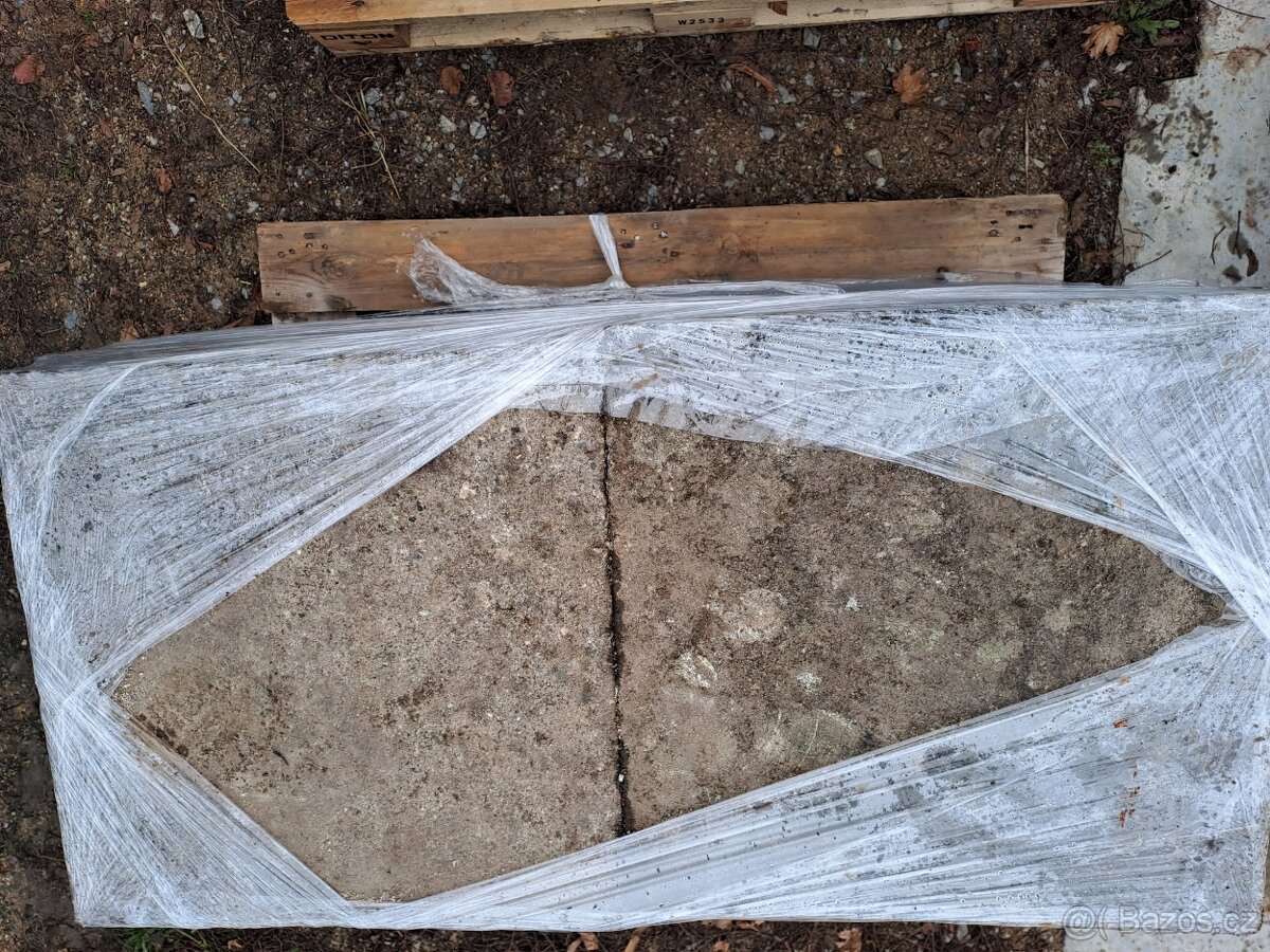 Prodám použitou zámkovou dlažbu. Rozměr 50x50x5 cm. Celkem 87 ks, složené na europaletách. Europaleta na výměnu, možná nakládka hydraulickou rukou na ložnou plochu. Odběr možný i po částech. Stav viz foto. Cena 50 Kč/ks. Inzerát platí do smazání.
