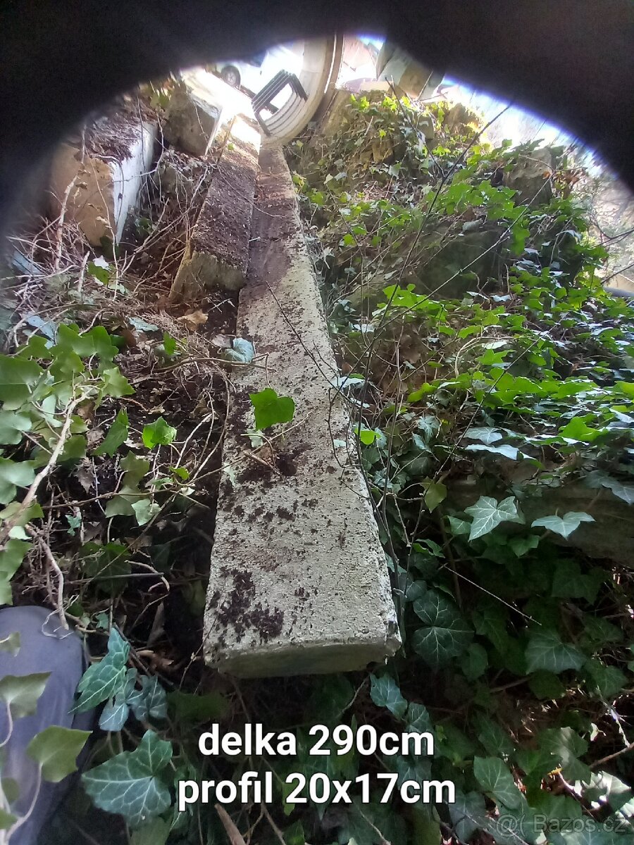 Betonová patka-podstavec dřevěnného sloupu délky 290cm, profil asi 20x17cm, možno použít jako překlad do zdi nebo např.sloupek brány apod.