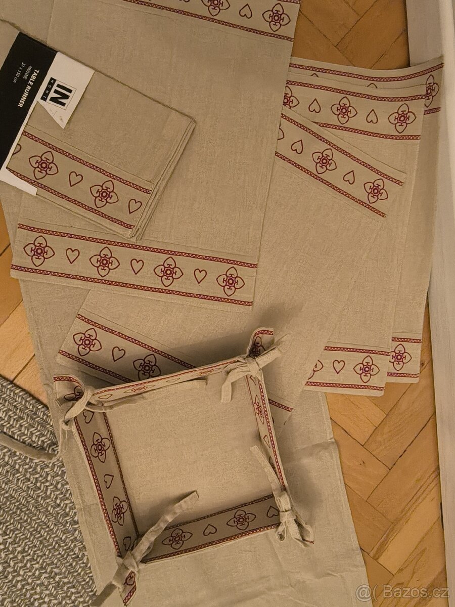 4 prostírání pod talíře (pevnější), 2x běhouny 40×150, mísa na pečivo= vše 100% bavlna