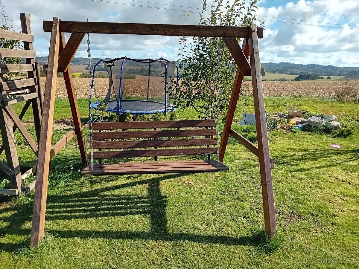 Prodám dřevěnou houpačku. Výška 206cm, šířka 240cm, síla trámků 7x12cm. Prodej Velké Meziříčí.