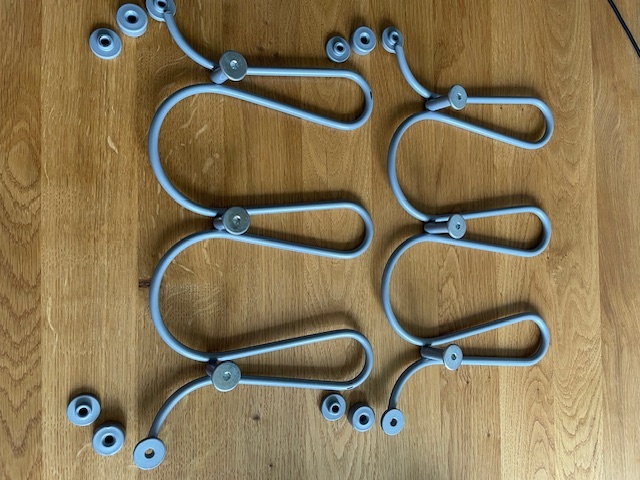2 nástěnné věšáky, kovové, celková šířka 38 cm, celková výška 20cm.