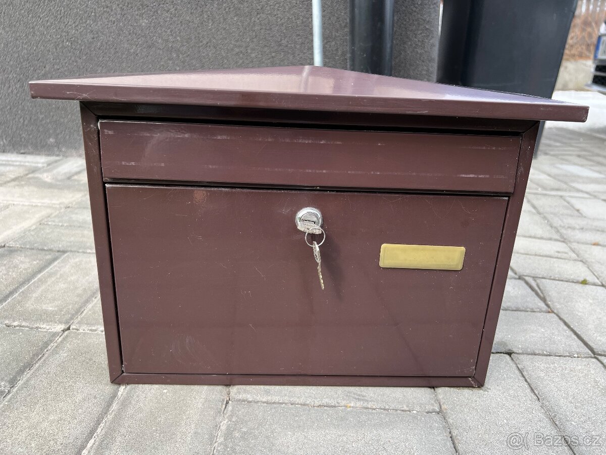 Prodám hnědou poštovní schránku s 2 klíči. Pár let používaná, ale po změně plotu pro ni nemáme využití.