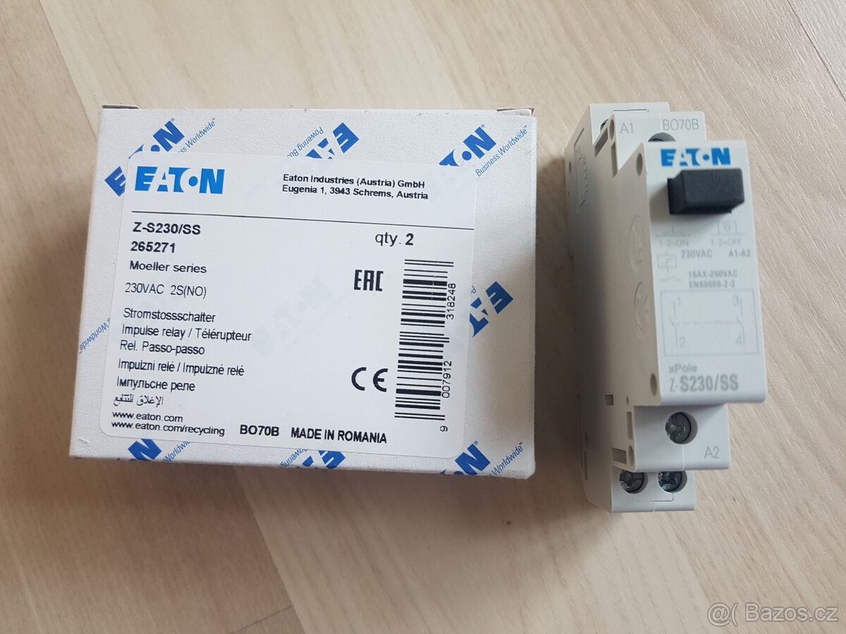 Impulzní relé EATON Z-S230/S - [17.4. 2026]Prodám Impulzní relé EATON Z-S230/S. nové. mám k dispozici 5Ks, které se nevyužily na stavbě. Cena uvedena za 1ks