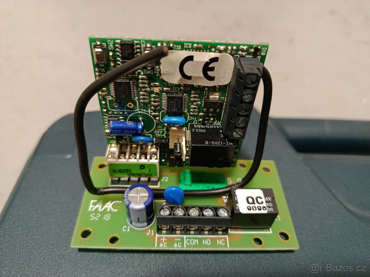 Prodám relé platinu FAAC včetně dvoukanálového zásuvného modulu s frekvencí 868Mhz.Jako celek lze použít pro ovládání pohonů vrat nebo bran různých výrobců ovladači FAAC.