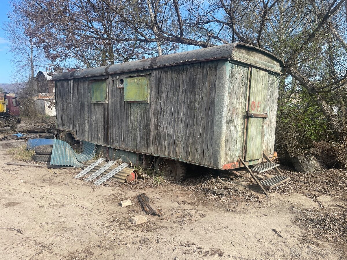 Maringotka - [21.4. 2026]Nabízím maringotku k dotvoření (dříve včelín), rozměr plochy 240 x 550. Fortelná konstrukce, střecha v pořádku, kola funkční.