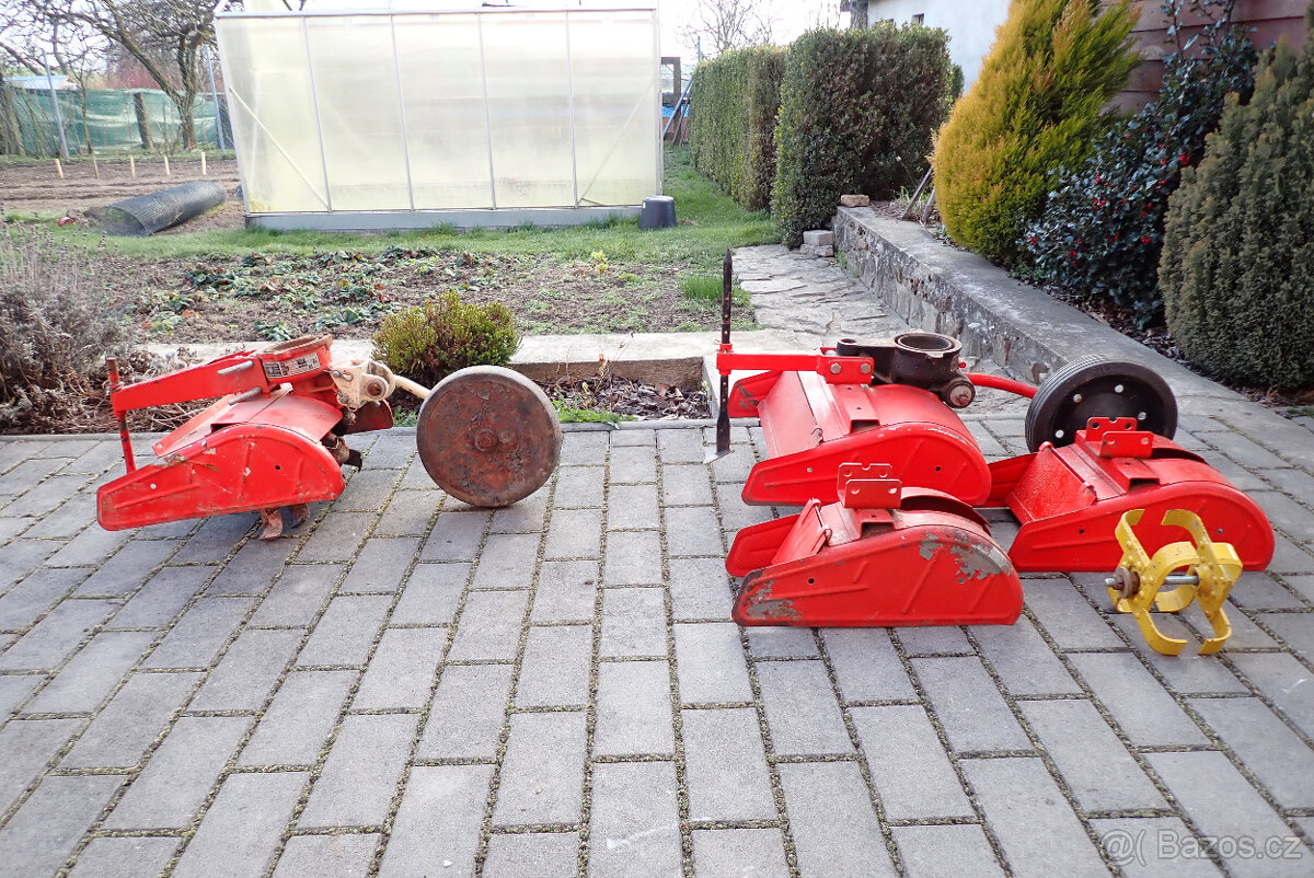 Prodám rotační plečky (okopávačky) k sytému tera vari, spojka 80 mm. V pravo na foto kompletní včetně krytů a nožů, cena 6900 Kč. V levo 3500 Kč.