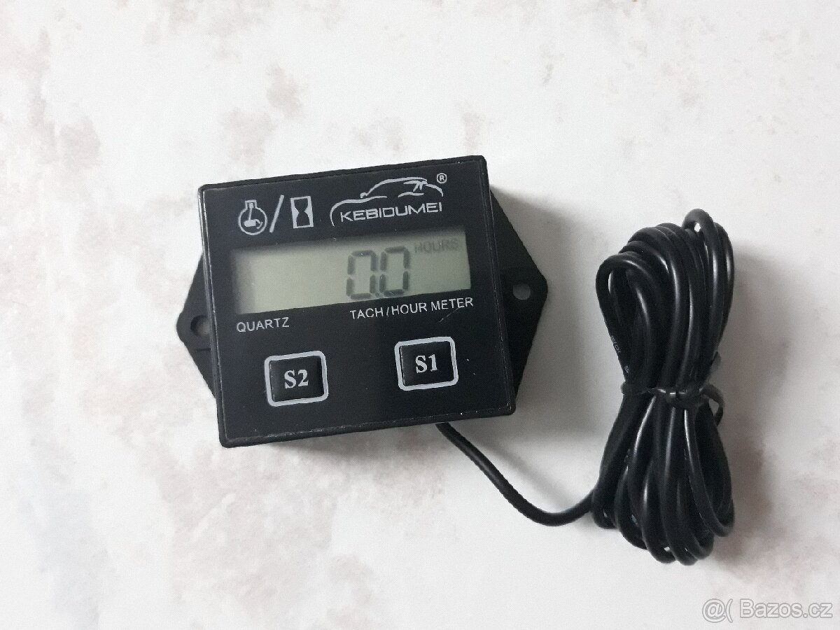 Digitální měřič provozních hodin, otáček motoru a hlídání servisního intervalu pro spalovací benzínové motory 2-taktní i 4-taktní. Vyměnitelná baterie CR2450 součástí. Sekačky, traktory, motorky, čtyřkolky, pily, křoviňáky. Nejedná se přímo o měření jednotky motohodin tak jak je definována, ale pouze o čas běhu motoru. Zařízení je nové pouze vyzkoušená funkčnost. K dispozici celkem 4 kusy.