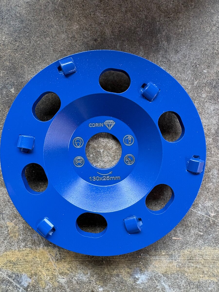 Diamantový brusný kotouč 130/25 PCD. Pro odstranění termoplastických materiálů na betonu a potěru, jako lepidel na parkety, zbytků lepidel, asfaltu a povrchových vrstev. Cena je bez DPH