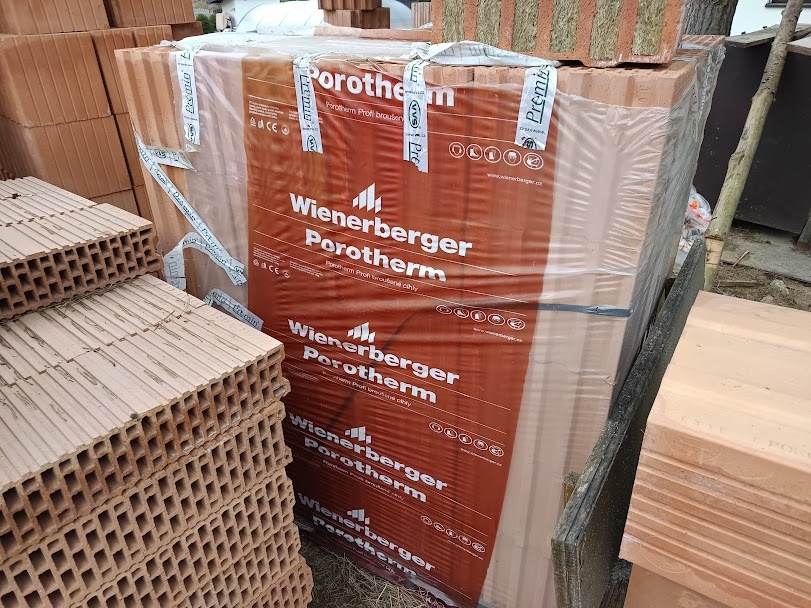 Porotherm T Profi 500 - [29.4. 2026]Prodám 3 tepelněizolační cihly s minerální izolací, pro zdění na tenkovrstvou maltu, pevnost v tlaku 8 MPa, součinitel prostupu tepla 0,14 W/m2K, hmotnost 20,9 kg. Zbytek ze stavby.