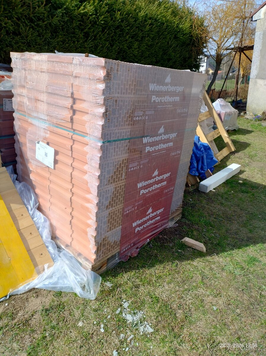 Cihly Porotherm 17,5 broušené - TOP - [20.3. 2026]Prodám cihly Porotherm 17,5 broušené. K dispozici 5 nerozbalených palet.