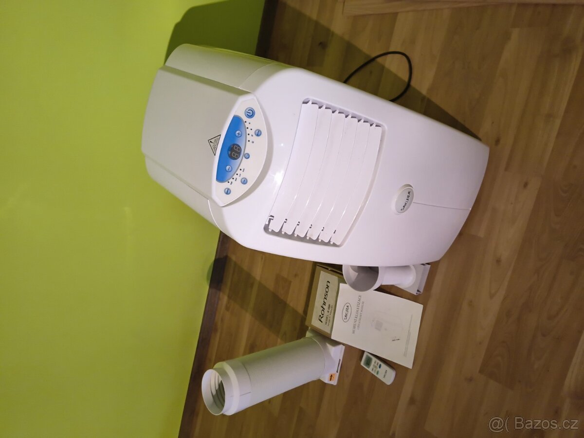 Mobilní klimatizace s příslušenstvím, dálkové ovládání, lišta do okna, Rohnson R-8800 těsnění do okna, klimatizace nepoužívaná, výkonná vhodná pro velké prostory do 45m2, detailní specifikace na obrázku nebo na internetu, energetická třída A, vzhledem k váze pouze osobní předání