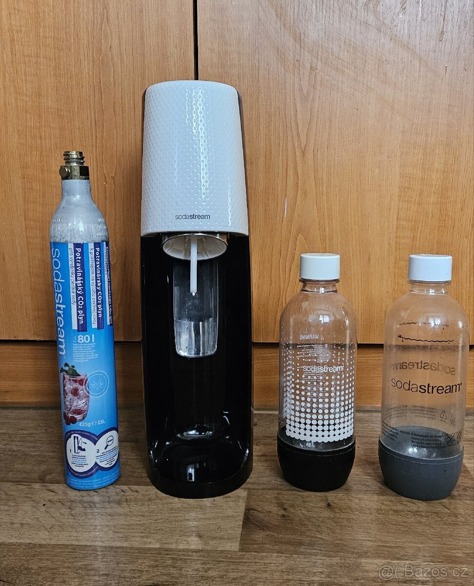 SodaStream Spirit Black + 2 bombičky + 3 lahve - [22.4. 2026]Prodám plně funkční výrobník sody SodaStream Spirit Black