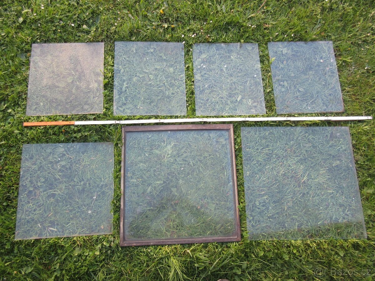 Skleněné tabule minimálně 30 x 40 cm až 50 x 60 cm. Použití: výplň oken, skleník, pařeniště, umělecké aktivity (malování na sklo). Pořád k dispozici.