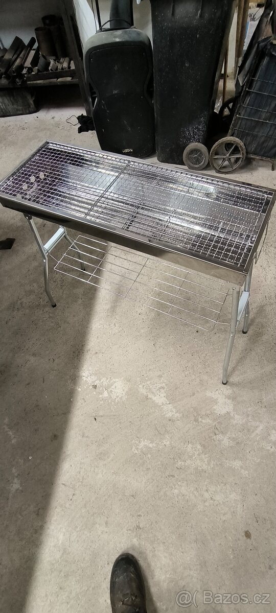 Prodám nový nerezový přenosný grill s rošty a hromadou odkládacího prostoru.