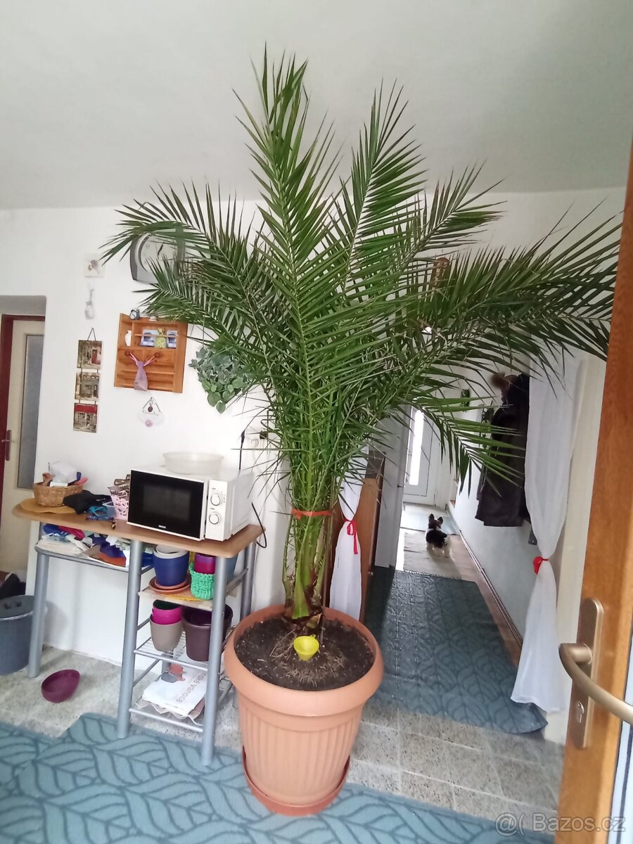 Nabízím krásnou, velkou, pravidelně hnojenou palmu viz fotografie. Přes léto bývá venku. Výška asi 2,5 m a šířka asi, tam odkud vyrůstají větve - kmen asi 55 cm. Kořenový bal je široký. Když se rozprostřou listy do šíře asi 2,5 - 3 m