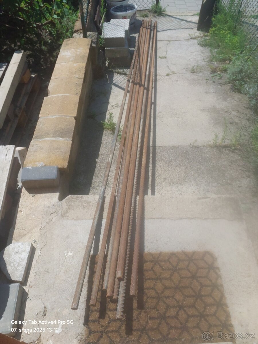 Mohutné roxory průměr 25 mm v délce 4 metry, celkem 6 kusů, jeden kus váźi 16 kg, cena 350 kč