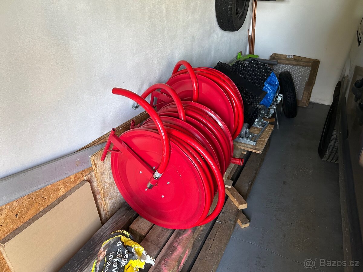 Prodám 1” hadici s navíjecím bubnem o délce 30 metrů. Na konci hadice je tryska. Jedná se o hadici s držákem z hasičského hydrantu. Možno použít třeba na zahradu.